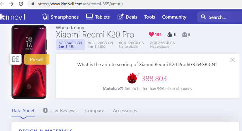 - GSM아레나의 기사 - Redmi K20 AnTuTu score revealed, leaves competition in the dust @ 2019.5.16